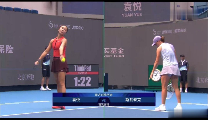袁悦0-2斯瓦泰克的比赛,第一盘前两局斯瓦泰克先是保发,然后破发袁悦以0-2落后,此后四局袁悦很难赢一局,以0-6输掉第一盘。